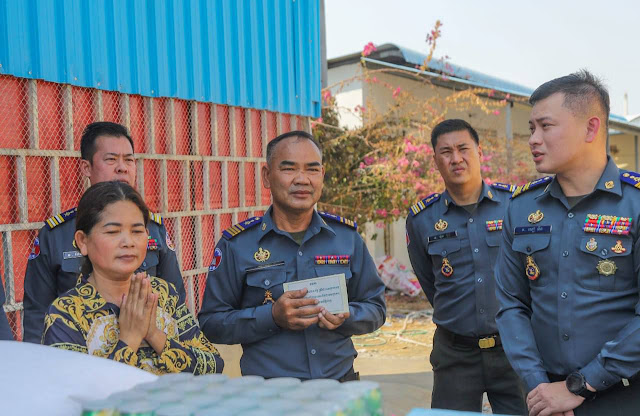 នាល្ងាច ថ្ងៃទី២៧ ខែមីនា ឆ្នាំ២០២៣ លោកវរសេនីយ៍ឯក សៀ ទីន នាយសេនាធិការ កងរាជអាវុធហត្ថរាជធានីភ្នំពេញ បាននាំយកសម្ភារចាំបាច់មួយចំនួន រួមនឹង អំណោយដ៏ថ្លៃថ្លារបស់ លោកឧត្តមសេនីយ៍ឯក រ័ត្ន ស្រ៊ាង មេបញ្ជាការរង កងរាជអាវុធហត្ថលើផ្ទៃប្រទេស មេបញ្ជាការ កងរាជអាវុធហត្ថរាជធានីភ្នំពេញ ចុះសួរសុខទុក្ខ លោកវរសេនីយ៍ត្រី ធូ សាវ៉ន សមាជិកមន្ទីរ កសាងកម្លាំង កងរាជអាវុធហត្ថរាជធានីភ្នំពេញ ដែលជួបទុក្ខដោយសារអគ្គិភ័យឆាបឆេះគេហដ្ឋាន កាលពីថ្ងៃទី២៤ ខែមីនា ឆ្នាំ២០២៣ ស្ថិតនៅភូមិភា សង្កាត់ប្រទះឡាង ខណ្ឌកំបូល រាជធានីភ្នំពេញ ។